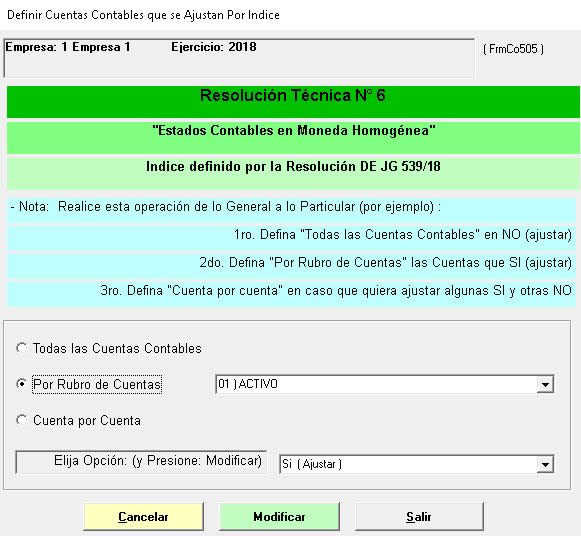 Definición del plan contable a medida, registración de las minutas o asientos contables, Definición de Asientos Modelo, Consulta o impresión del Libro Diario, los Mayores de Cuentas, el Balance de Sumas y Saldos, y el Balance de Presentación con el esquema de la Fórmula de Balance. Nuevo Módulo para cálculo de ajuste de cuentas por índice de inflación (RT6).