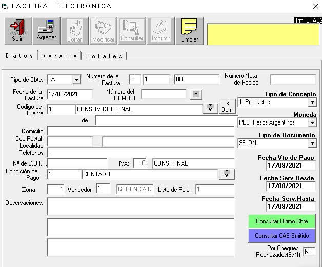 Emisión de Factura Electrónica en línea, Resolución 1361 AFIP (Tipo A, B, C o M) Notas de Crédito y Débito
